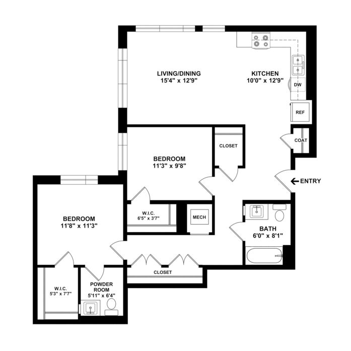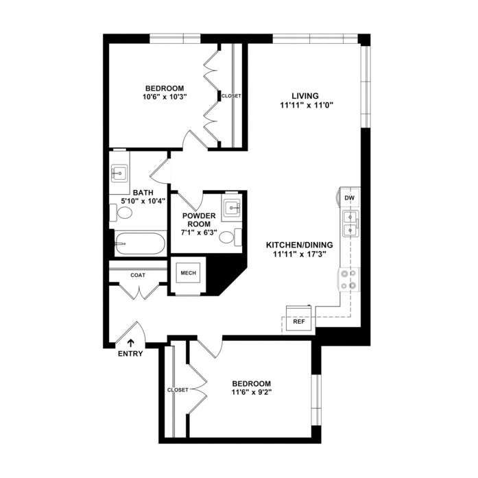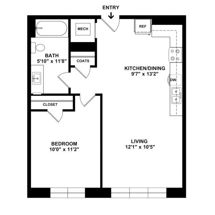 105 East (1 bedroom/60% unit)- 1/2 off 1st month’s rent*